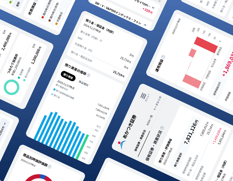 資産の増減や運用成績を一目で確認でき、資産状況の全体像をスムーズに把握できます。