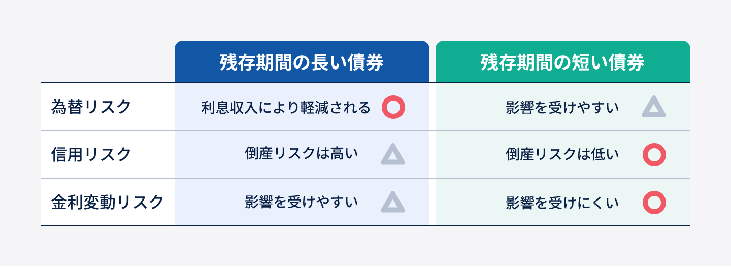 残存期間を意識して選ぶことで、利回り水準の調整やリスク・リターンのバランスを上手にコントロールできるというメリットがあります。